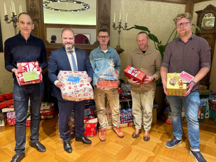 Viele Wunschzettel hingen Ende November am Weihnachtsbaum im Foyer des Aachener Rathauses. Und entsprechend viele Geschenke lagen dann pünktlich zur Übergabe im Rathaus. „Diese Aktion ist eine schöne Tradition und trotzdem immer wieder aufs Neue aufregend für alle Beteiligten. Und für mich ganz besonders, weil ich das erste Mal dabei sein kann“, sagte Oberbürgermeister Dr. Michael Ziemons. Die Aachener*innen haben dieses Jahr besonders schnell die Wünsche der Kinder und Jugendlichen in den Aachener Jugendhilfeeinrichtungen vom Wunschzettel-Weihnachtsbaum „gepflückt“. „371 Wünsche hatten wir hier am Wunschzettelbaum, die waren nach vier Tagen vergriffen“, so Ziemons. Mittlerweile sind die Geschenke liebevoll verpackt im Rathaus abgegeben worden.