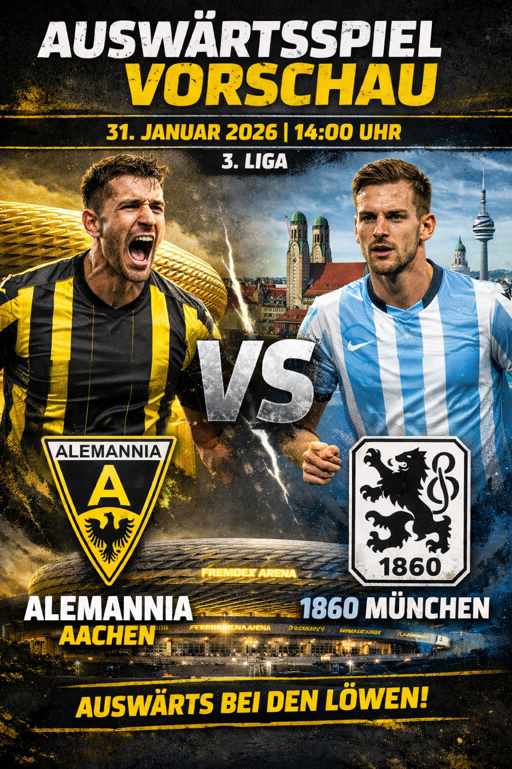 Das nächste Auswärtsspiel steht für die Alemannia an. Am Samstag um 14:00 Uhr trifft die Mannschaft von Cheftrainer Mersad Selimbegovic in der bayerischen Landeshauptstadt auf den TSV 1860 München.