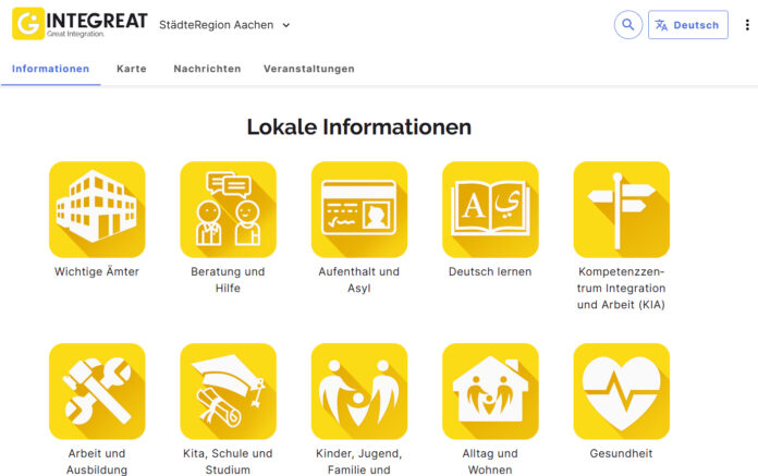 StädteRegion Aachen. Seit etwas mehr als einem Jahr bietet die digitale Plattform „Integreat“ Informationen für Menschen an, die neu in die StädteRegion Aachen zugewandert oder geflüchtet sind. Und das  sowohl in einfacher Sprache als auch in mehreren Fremdsprachen. Bereits rund 62.000 Zugriffe auf Integreat wurden bislang für die StädteRegion verzeichnet – davon entfallen etwa 29.000 auf andere Sprachen als Deutsch. Zu den drei meistgenutzten Sprachen gehören Englisch (8.200 Zugriffe), Russisch (5.000 Zugriffe) und Arabisch (4.600 Zugriffe). Die Themen reichen von Wohnen, Mobilität, Arbeit und Bildung bis hin zu Freizeit, Gesundheit und vieles mehr. Auch eine Vielzahl an Beratungsstellen und Behörden wird dargestellt. Eine Kartenfunktion hilft den Menschen, die Orte schnell zu finden und weitere Angebote in der Nähe zu entdecken. Die Inhalte werden dabei kontinuierlich angepasst und erweitert.