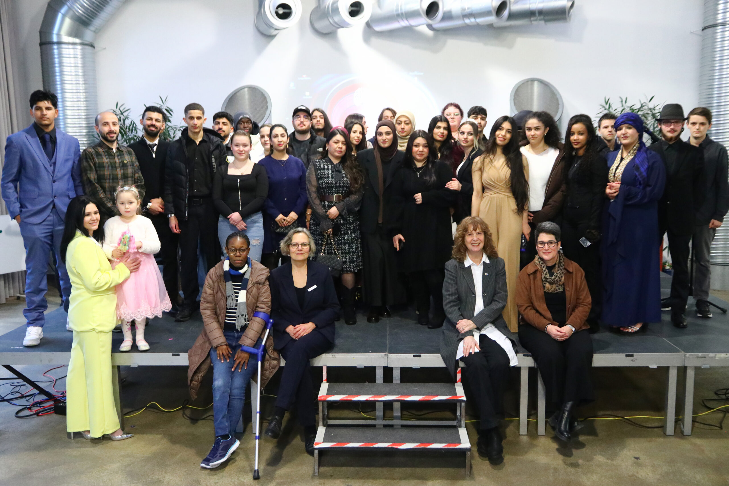 Die Feier wurde von zwei Teilnehmenden des vhs-College moderiert und musikalisch durch die College Drums begleitet, die mit ihren rhythmischen Beiträgen für festliche Stimmung sorgten. Höhepunkt war der Gesang von Absolvent Amir Amiri mit der persischen Ballade „Baraye“ und seine Rap-Komposition. Ergänzt wurde das Programm durch Redebeiträge von Ehrengästen Heinrich Brötz (Beigeordneter für Bildung, Jugend und Kultur), Markus Terodde (Bildungsdezernent der Städteregion Aachen) und die stellvertretende Vorsitzende des städtischen Ausschusses für Kultur, Theater und vhs Silke Bergs, die den Absolvent*innen zu ihren Leistungen gratulierten und ihren Mut zum Neubeginn würdigten.