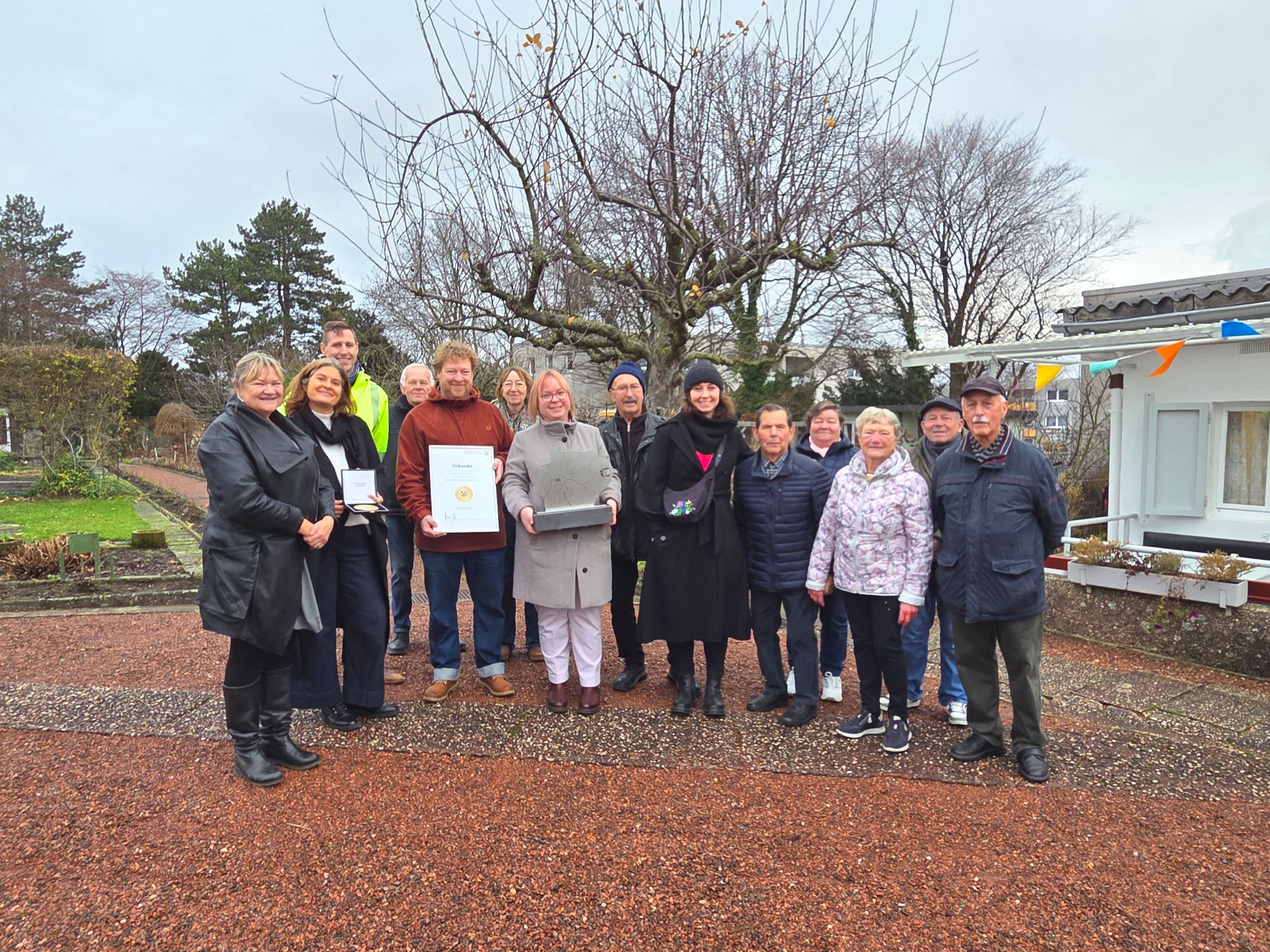 Das ökologische Konzept, die Gestaltung der Parzellen und das Vereinsleben überzeugten die Jury. Die Goldmedaille des Wettbewerbs „Kleingärten NRW“ erhielt der Verein am 15. November in Dortmund. Der Wettbewerb findet alle vier Jahre statt. Die Kleingartenanlage hatte sich beworben, nachdem sie zuletzt 2024 mit dem Wanderpreis der Stadt Aachen ausgezeichnet worden war, erklärt Gabi Babendreyer, Vorstand des Stadtverbands Aachen der Familiengärtner e.V.. Im Sommer dieses Jahres besuchte die Jury, darunter auch NRW-Landwirtschaftsministerin Silke Gorißen, die Kleingartenanlage und machte sich vor Ort einen Eindruck. Danach hieß es für die Vereinsmitglieder: warten. Dass sie tatsächlich gewinnen würden, damit hatte niemand gerechnet, wie Serife Kara vom Vorstand der Dauerkleingartenanlage Soldatengasse erläutert. „Wir waren nach dem Besuch der Jury zwar guter Dinge, aber wussten, dass der NRW-weite Wettbewerb eine andere Hausnummer als der stadtinterne Wettbewerb ist. Deshalb waren wir wirklich ungläubig und freudig überrascht, als wir die Goldmedaille erhalten haben.“ Insgesamt haben 14 Anlagen an dem Wettbewerb teilgenommen. Der Gewinn beim NRW-Wettbewerb ermöglicht eine Teilnahme am bundesweiten Wettbewerb „Gärten im Städtebau“ für Kleingärten im nächsten Jahr. Die Bewerbung der Aachener Anlage ist bereits eingereicht.