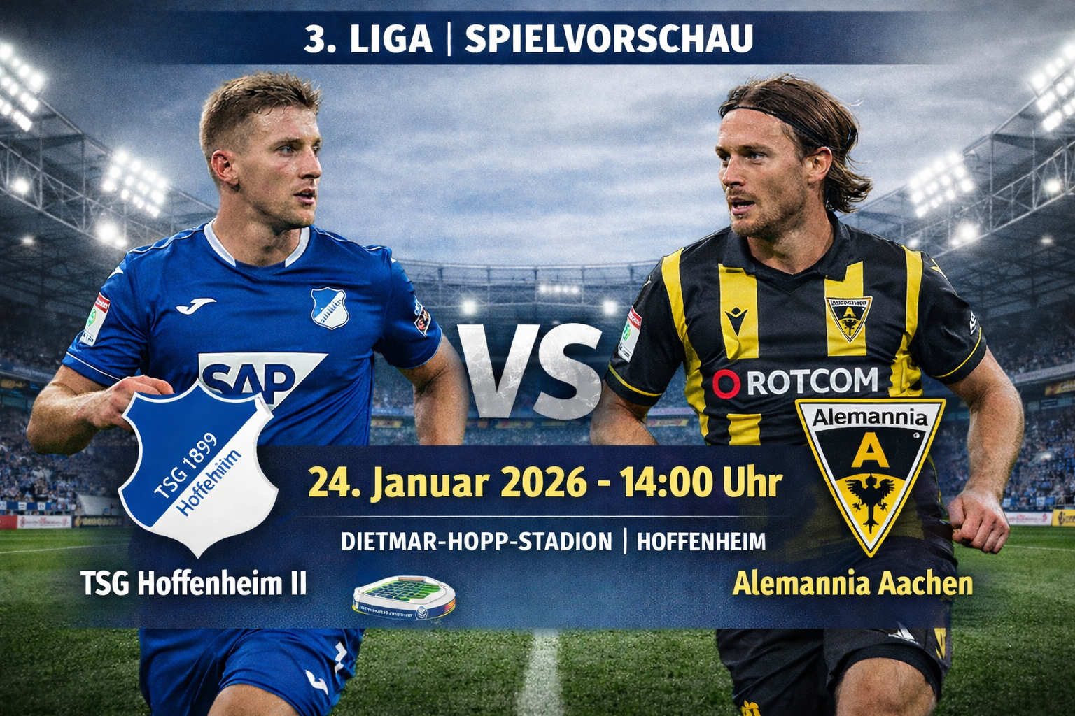 Am Samstag trifft die Alemannia um 14:00 Uhr im Kraichgau auf die Zweitvertretung der TSG Hoffenheim. Gegen die spielstarke junge Hoffenheimer Mannschaft soll der erste Sieg im Kalenderjahr 2026 gelingen.