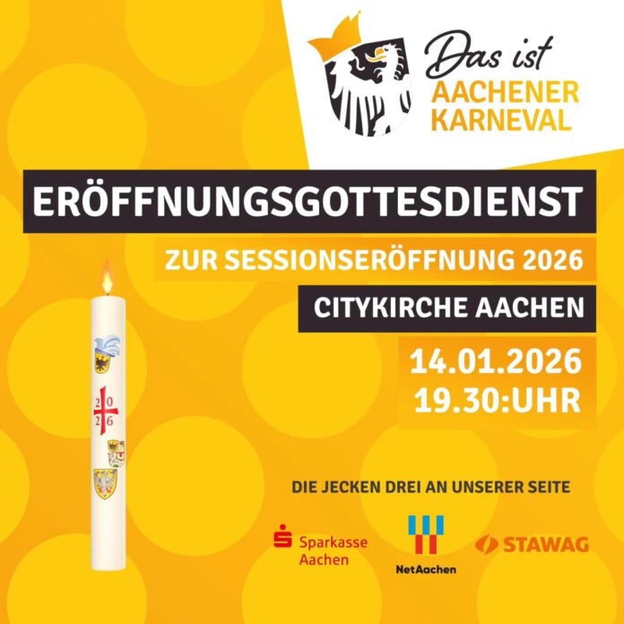 Traditionell veranstaltet der Festausschuss Aachener Karneval (AAK), am Mittwoch, 14. Januar, um 19.30 Uhr in der Citykirche St. Nikolaus einen Ökumenischen Gottesdienst zur Sessionseröffnung. Pfarrer Armin Drack und Diakon Mathias Dederichs zelebrieren den Wortgottesdienst auf Öcher Platt. Eingeladen sind alle Fastelovvendsjecke in bunten Kostümen und Uniformen.