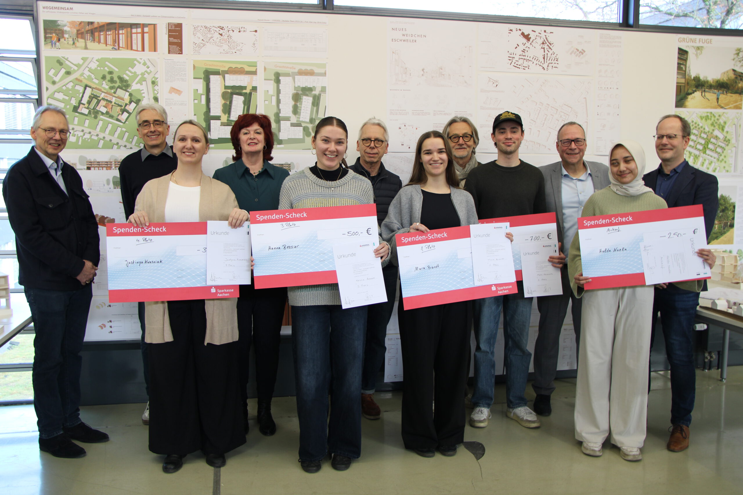 Die Jury setzte sich aus Vertreter*innen der S-Immo (unter anderem Geschäftsführer Dietmar Röhrig und Elke Ostenda), der FH Aachen (darunter der ehemalige Prof. Horst Fischer und Prof. Ulrich Eckey) sowie städtischen Partnern zusammen – ein starkes Gremium, das sowohl fachliche Exzellenz als auch regionalpolitische Perspektiven verbindet.