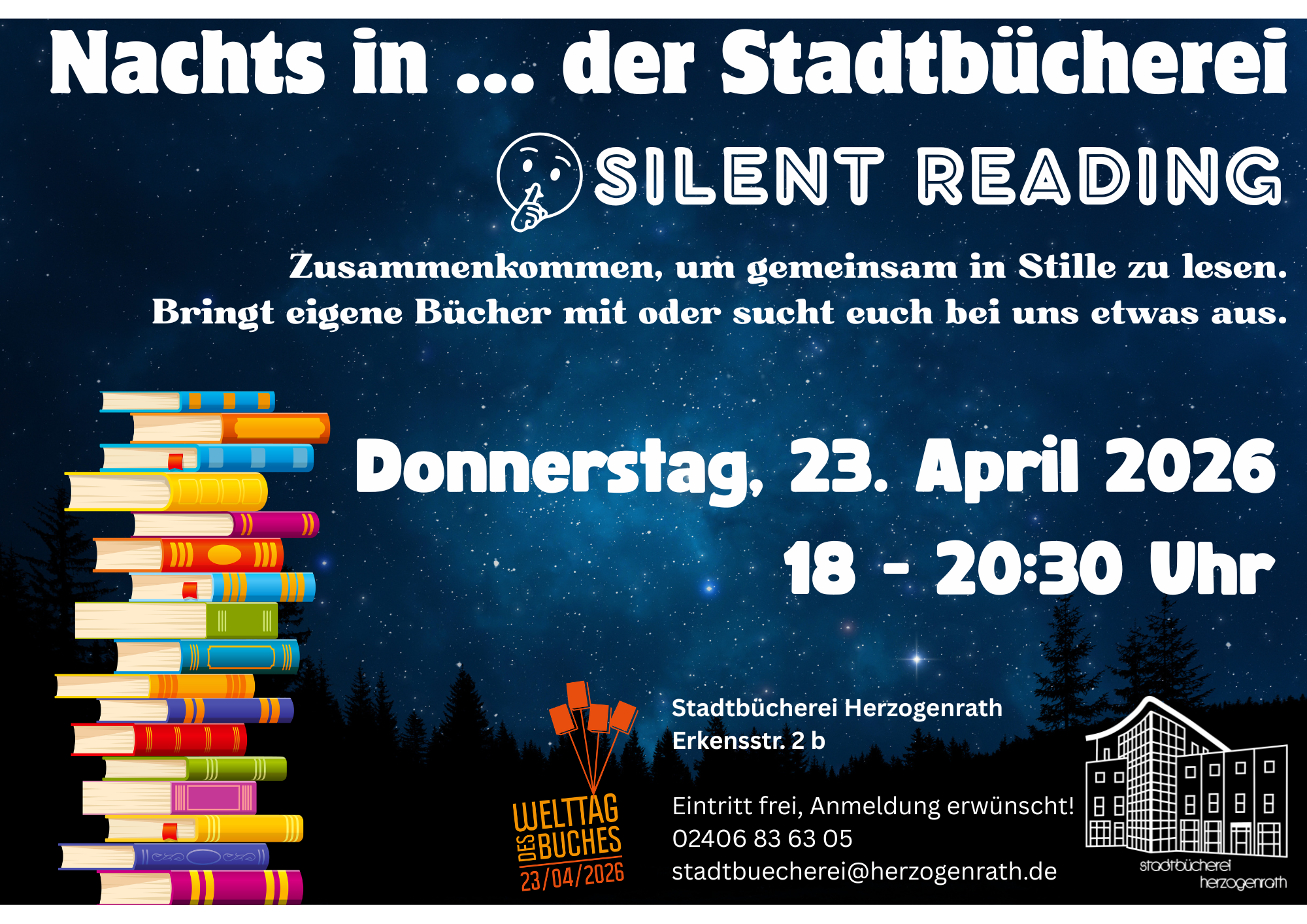 Zum diesjährigen Welttag des Buches am Donnerstag, den 23. April 2026, setzt die Stadtbücherei Herzogenrath ein Zeichen gegen den hektischen Alltag und lädt zu einem ganz besonderen Event ein: der ersten Silent Reading Party. In einer Welt voller Benachrichtigungen und Multitasking schafft das Team der Stadtbücherei einen geschützten Raum für das, was oft zu kurz kommt – das tiefe Eintauchen in eine Geschichte.