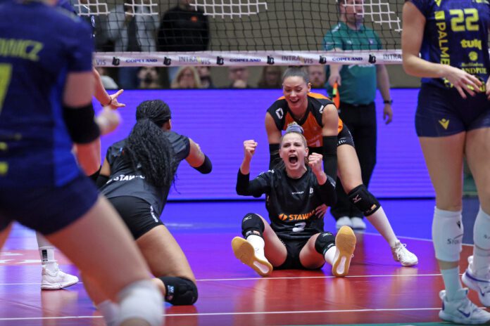 Nach einem kurzen Schlagabtausch gleich zum Satzbeginn machten die Gäste aus Schwerin ihren Anspruch auf den Sieg im Aachener Hexenkessel mit großem Druck klar. Beim Spielstand von 5:11 hatte Aachens Cheftrainerin bereits die zweite Auszeit genutzt, ihr Team wieder in die Spur zu bringen.