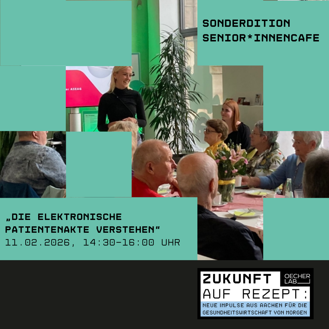 Um hier Orientierung zu bieten, laden das OecherLab und die AOK Rheinland/Hamburg am 11. Februar 2026 von 14.30 – 16 Uhr zu einer Sonderedition des Senior*innencafés in das OecherLab, Kapuzinergraben 19D, 52062 Aachen ein. Unter dem Titel „Die elektronische Patientenakte verstehen“ richtet sich die Veranstaltung gezielt an Seniorinnen und Senioren, Angehörige sowie alle Interessierten, die sich in ruhiger und persönlicher Atmosphäre mit digitaler Gesundheit beschäftigen möchten.