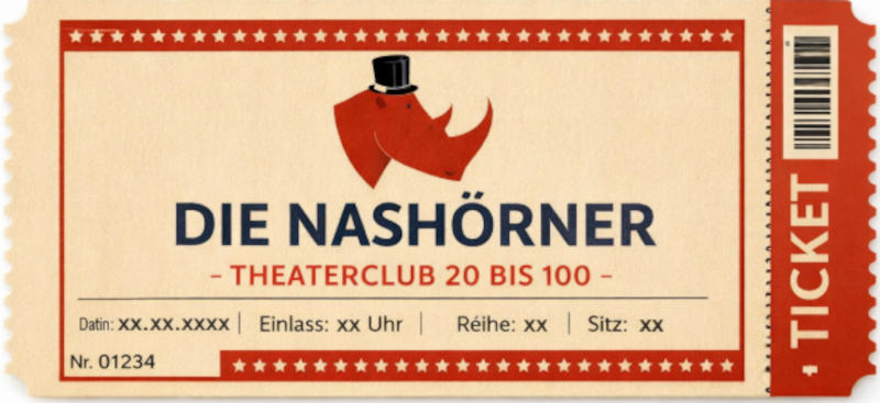 Tickets für das Stück „Die Nashörner“, präsentiert vom Theaterspielclub „Theater 20 bis 100“ am 16. und 17. Januar 2026 auf Schloss Burgau, gibt es im iPUNKT, Markt 6, oder online unter www.tickets.dueren.de.