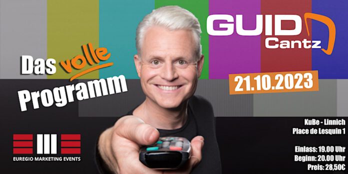 Wie schon mit seinen Erfolgs-Programmen „Cantz schön frech“, „Ich will ein Kind von Dir“, „Cantz schön clever“ und „Blondiläum“ präsentiert sich Guido Cantz auch mit „Das volle Programm“ als Live-Comedian der Spitzenklasse. Darum heißt es für alle, die gern lachen: Unbedingt am 21.10. um 20 Uhr nach Linnich kommen und dabei sein!